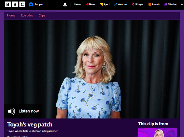 Toyah’s veg patch | Toyah Willcox tells us she’s an avid gardener. Listen at BBC Sounds.
