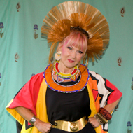 punk-tribal outfit and crown of pink