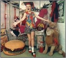 holding old stage costumes.